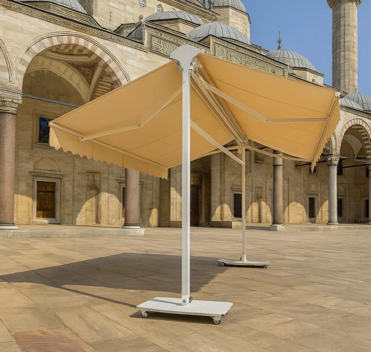 Rüzgar dayanımı yüksek gövde yapısı ve solmaya karşı dirençli tente kumaşı sayesinde dört mevsim kullanım imkanı sunar. Profesyonel montaj ile birlikte uzun yıllar bakım gerektirmeden sorunsuz şekilde kullanılabilir.