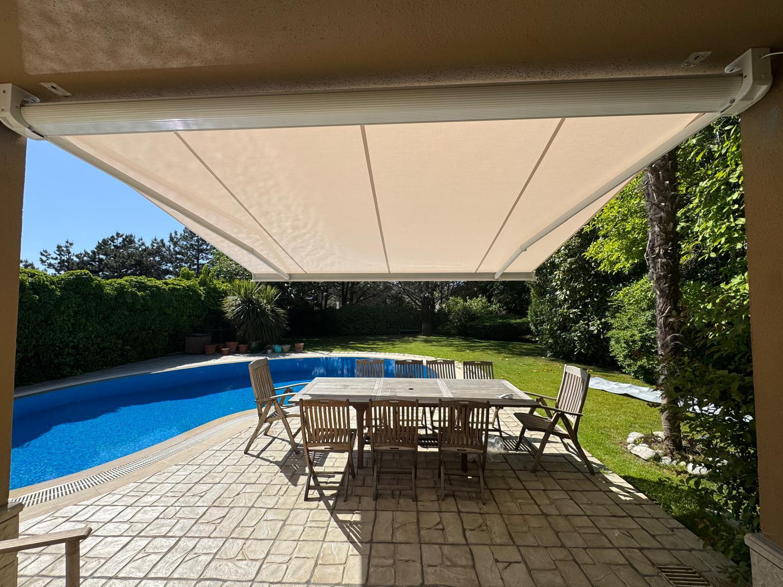 Motorlu sistem sayesinde tente kumaşı her zaman dengeli ve gergin kalır, estetik bir görünüm sunar.
