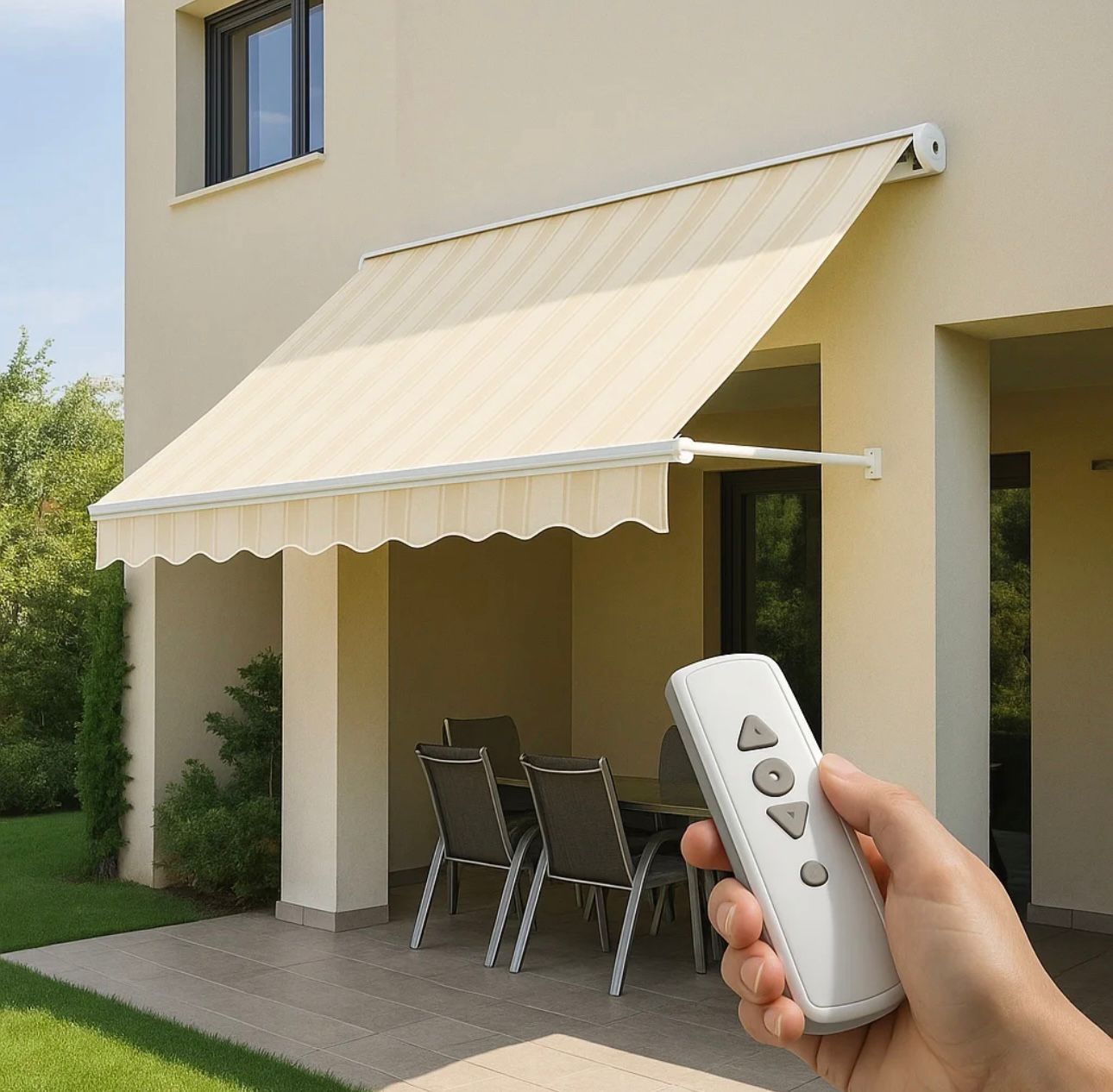 Entegre motor sistemi sayesinde manuel müdahaleye gerek kalmadan çalışan, uzaktan kontrol edilebilen otomatik tente modelidir. Geniş açılım kapasitesi sayesinde büyük alanlarda etkili gölgelendirme sağlar.